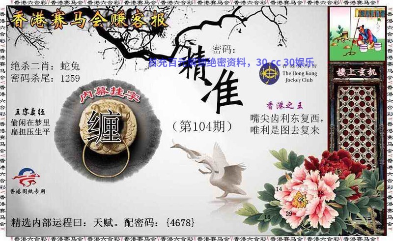 109期:助理玄机诗/简单好下注/台湾玄机诗/港台澳七肖/必中人物